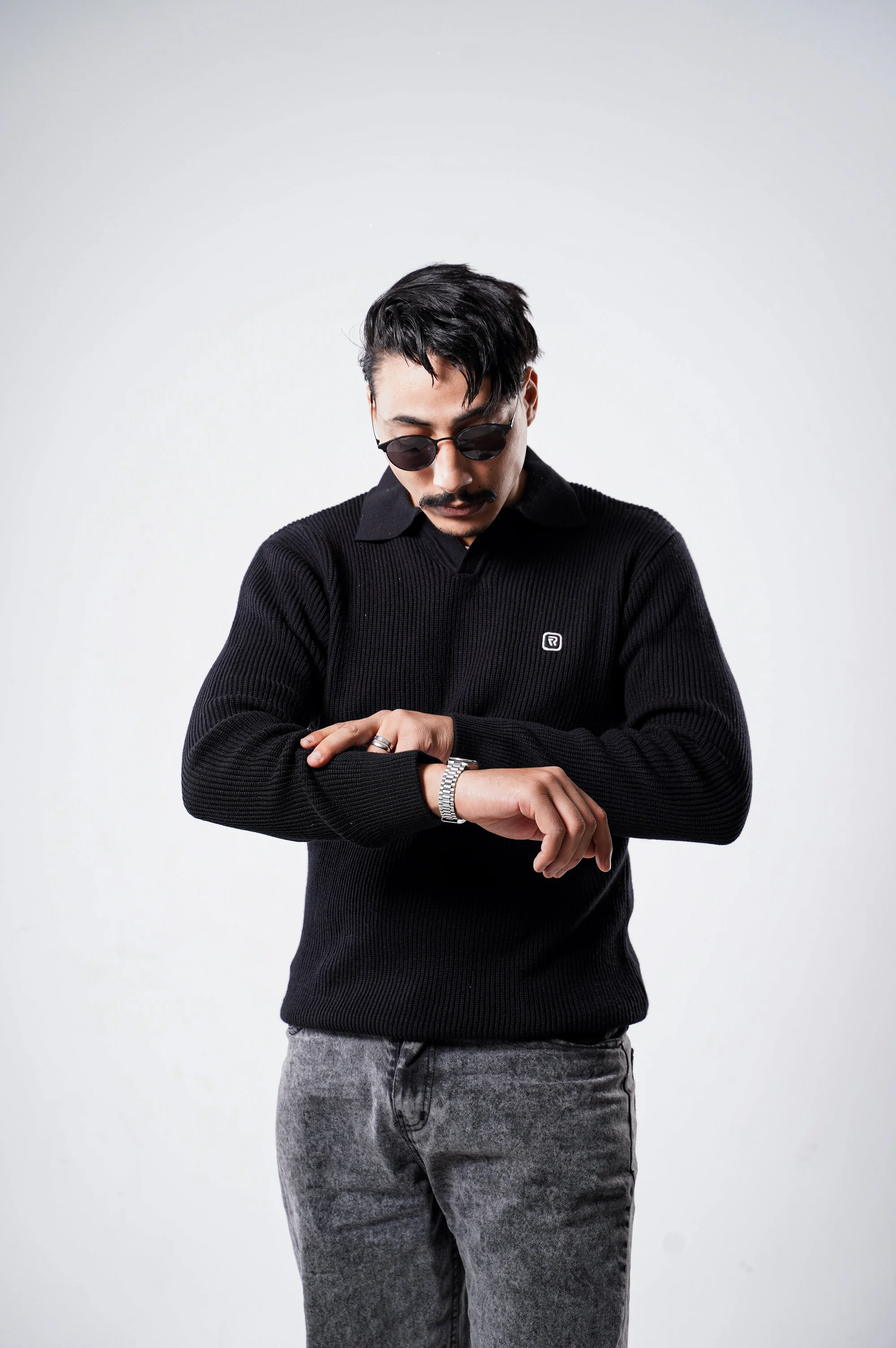 Pull Col Polo Côtelé Noir. L'Élégance Redéfinie.